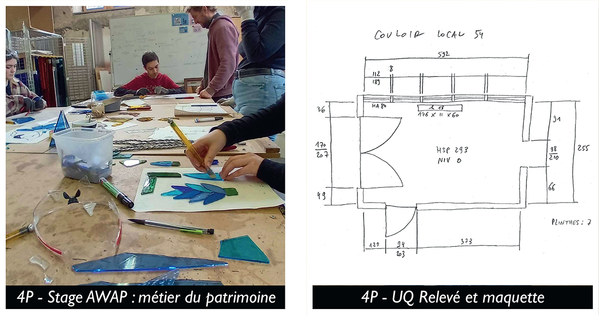 - Stage de 5 jours dans un métier du patrimoine : vitrail, gravure sur verre, céramiques… + rapport de stage